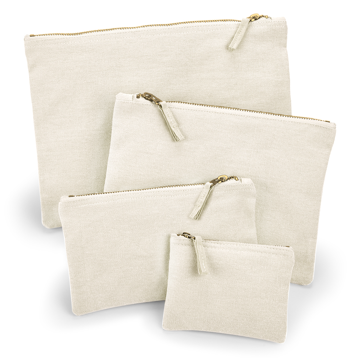 Kanvasposer i børstet bomullskanvas med vintage style metallglidelås.