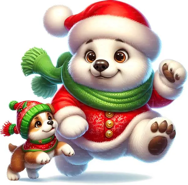 DTF merke – Isbjørn med nisselue og hund