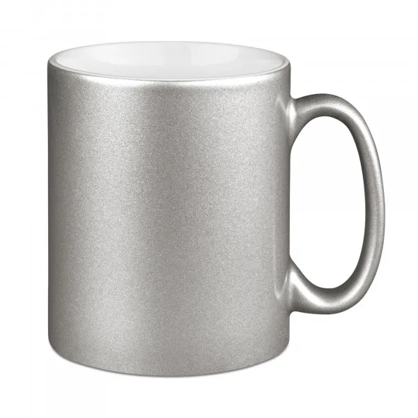 Keramikkkrus med C-håndtaksform med utside i glitterfarger (gull og sølv).