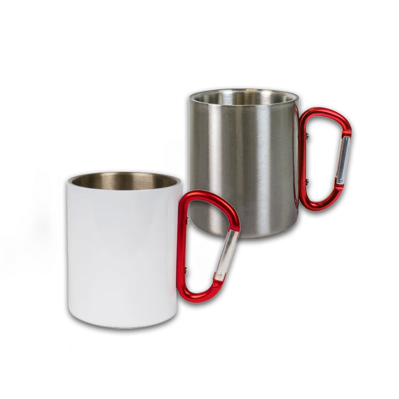 Denne stilige, isolerte koppen i rustfritt stål med et mørkerødt karabinhåndtak er perfekt for camping og andre utendørsaktiviteter. Den kan skreddersys ved sublimering og er en sporty, praktisk gaveartikkel. Dobbeltvegget, rustfri, med innvendig og utvendig rustfritt stål. Dette bruddsikre, lette kruset i rustfritt stål er en absolutt hit i utendørsmiljøet. Hvit utside, med rød karabinkrok Lett, bruddsikker og rustfri Håndvask anbefales.