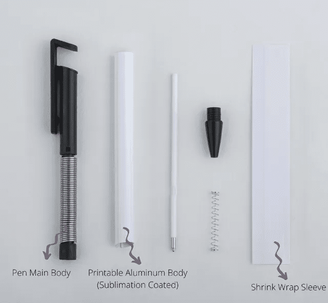 Kulepenn for sublimering i aluminium med innebygget mobilholder.